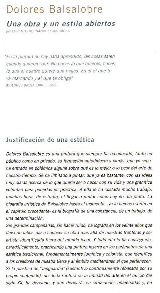 Hernandez Guardiola, Lorenzo, ”Una obra y un estilo abiertos ”, catálogo exp. Retrospectiva 1982-2000 Excma. Diputación. Alicante